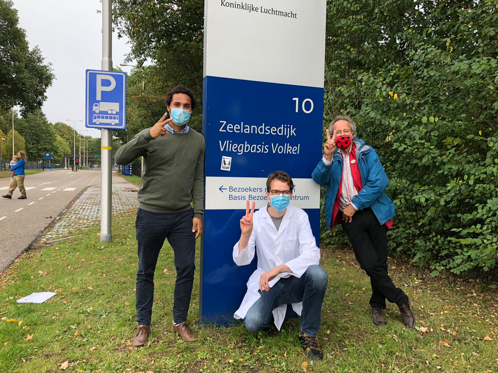 Eerst fietsten NVMP-bestuursleden Dirk Hoogenkamp en Jeffrie Quarsie samen met andere Nederlandse en Duitse studenten naar Volkel. Daarna was Dirk een van de sprekers bij de toegangspoort van de basis.